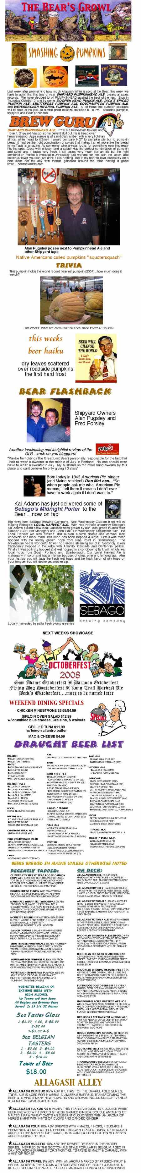 The Bear’s Growl 10-2-08