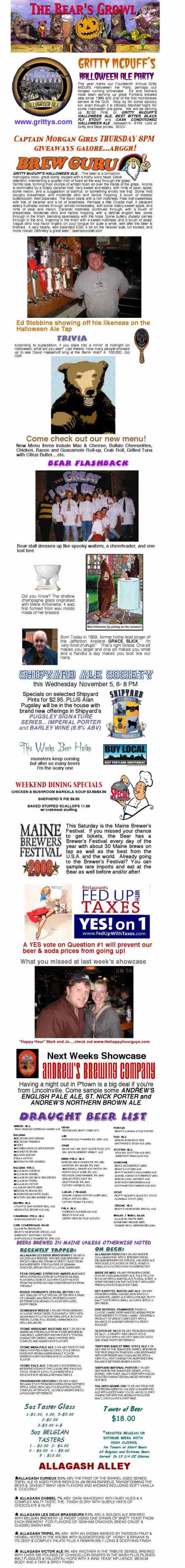 The Bear’s Growl 10-30-08